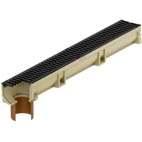 ACO Žlab Euroline 2.0 polymerbeton se svislým odtokem DN110 s litinovým roštem B125kN, délka 1000mm, šířka 118mm, hloubka 104mm - Jindřich Rejthar velkoobchod s.r.o.